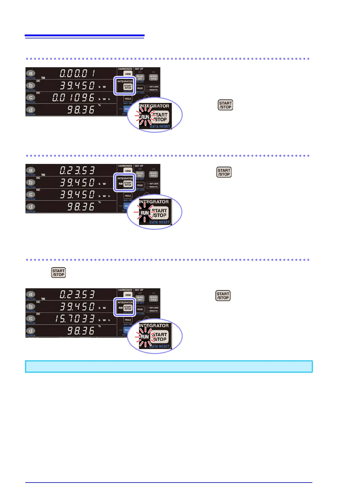 Pressing while the RUN lamp is flashing (indicating that integration is stopped) causes integration to
