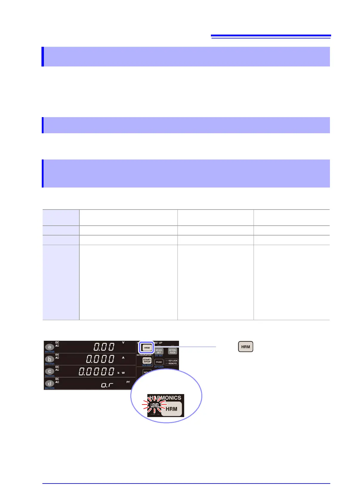The following table summarizes the instrument’s harmonic measurement parameters and corresponding dis-
