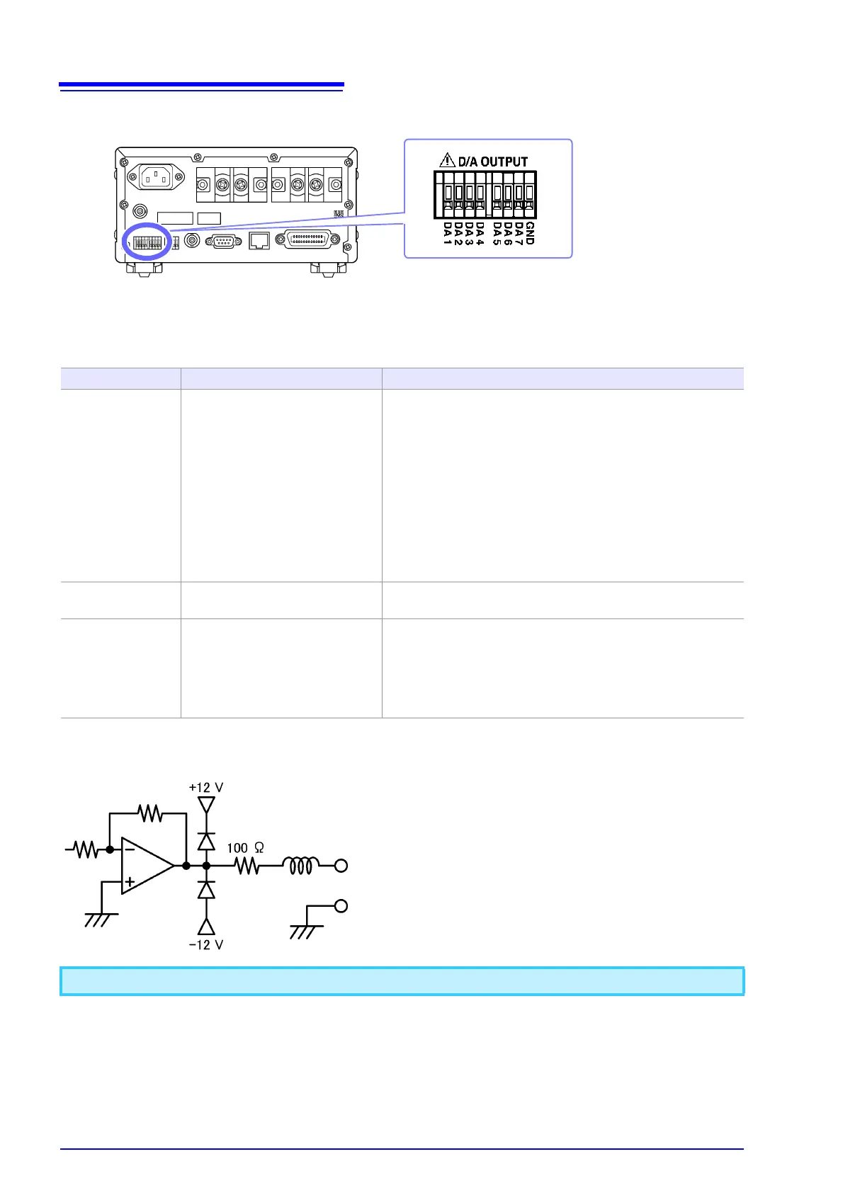 A maximum voltage of approximately ±12 V may be output from D/A output terminals.