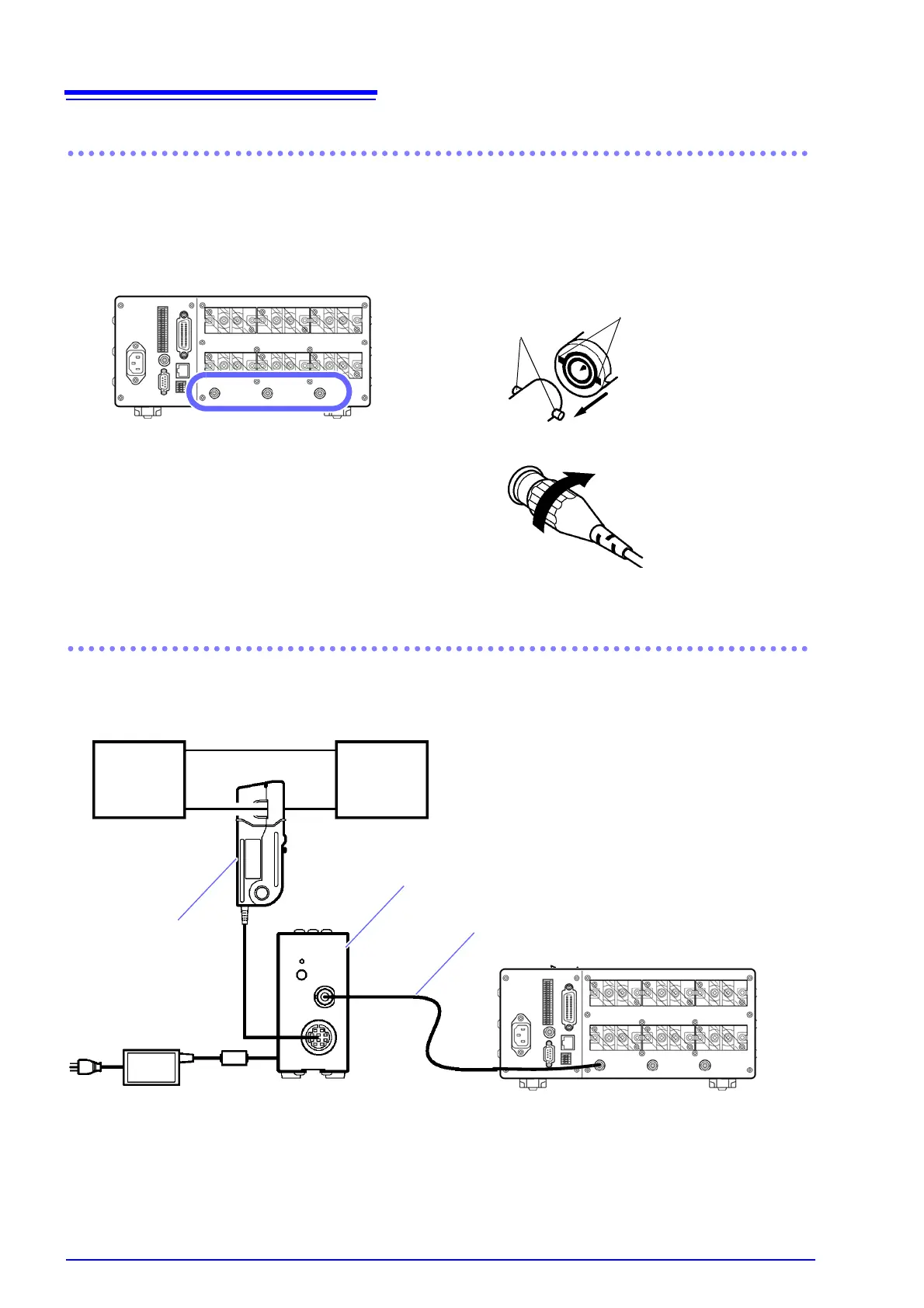Connect the clamp sensor’s BNC connector to a current input terminal.