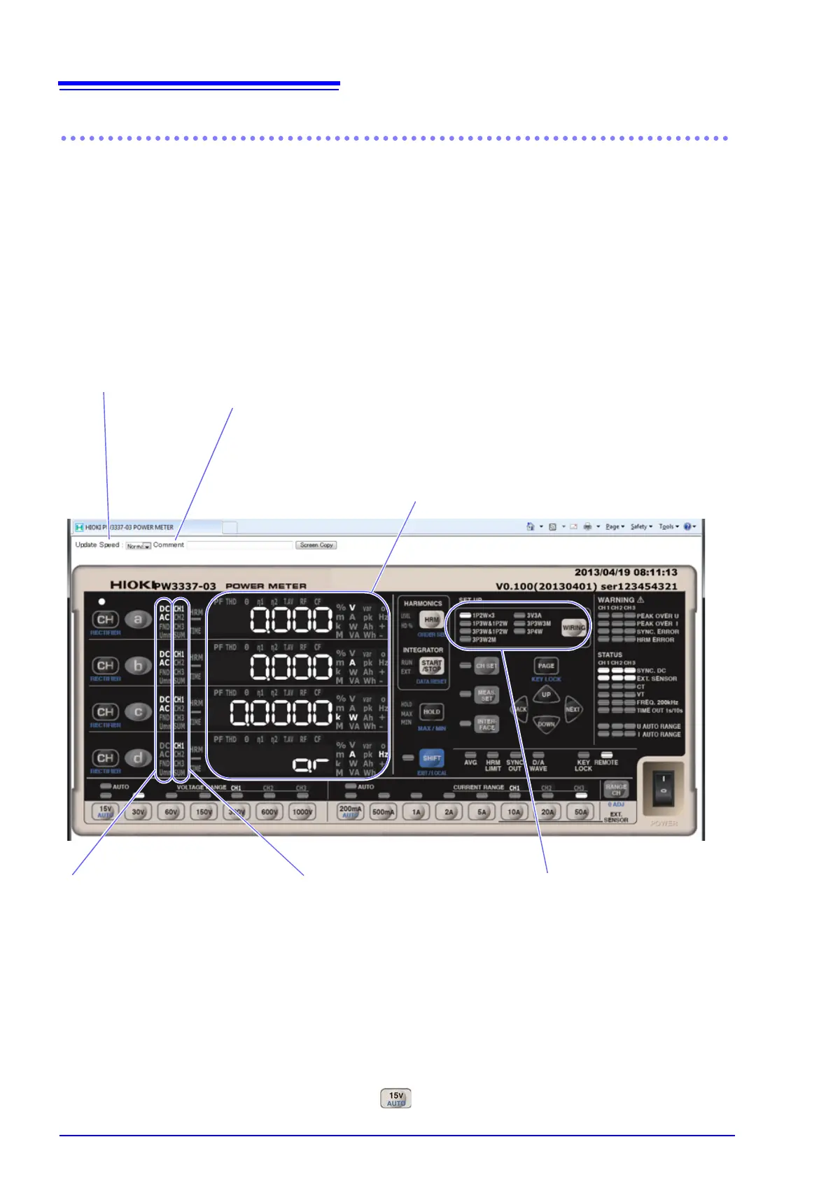 value display area. You can select pK, Hz, THD, θ, T.AV,