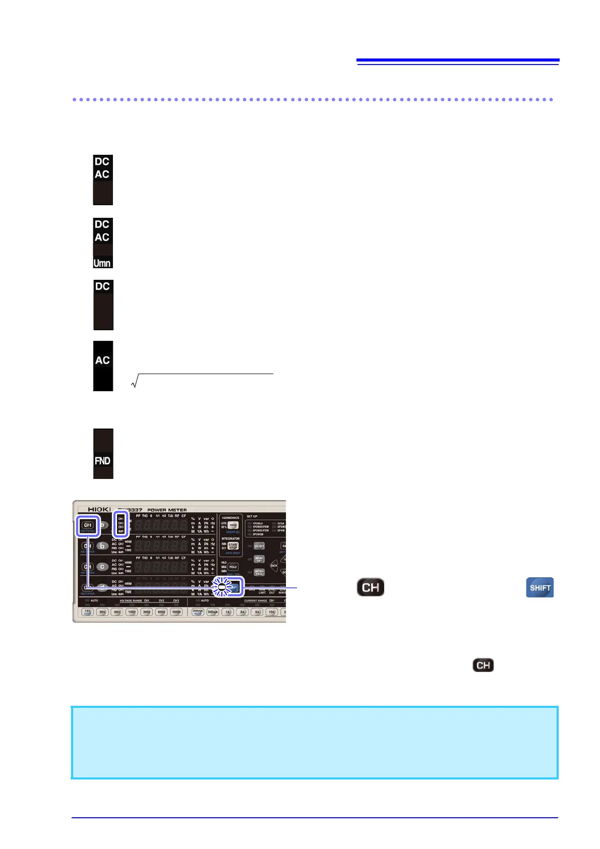 Displays calculated values given by the following equation as RMS values for the AC component