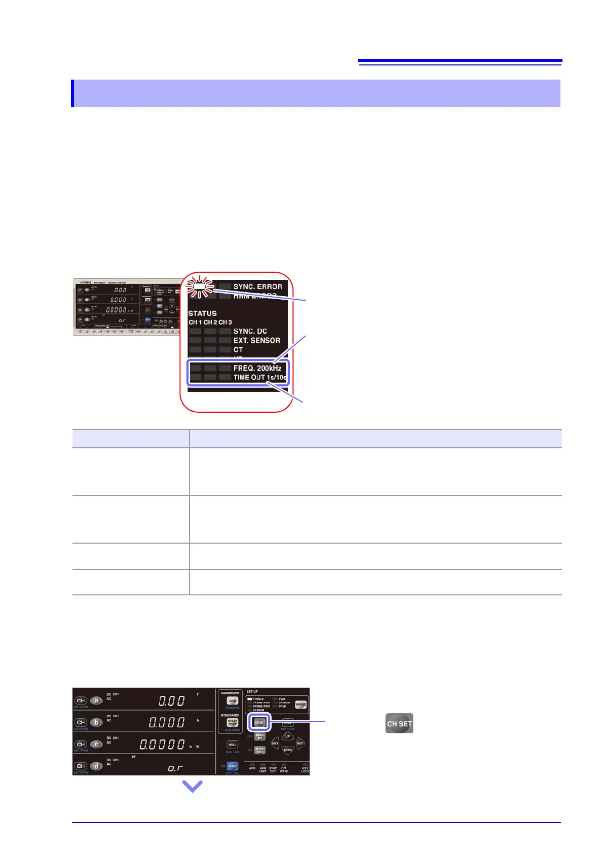 When the synchronization source is set to voltage (U) or current (I), the SYNC. ERROR lamp will light up if the