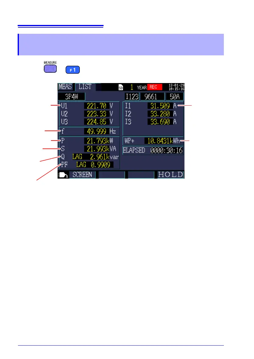 Press the or [SCREEN] key to display the [MEAS, LIST] screen.