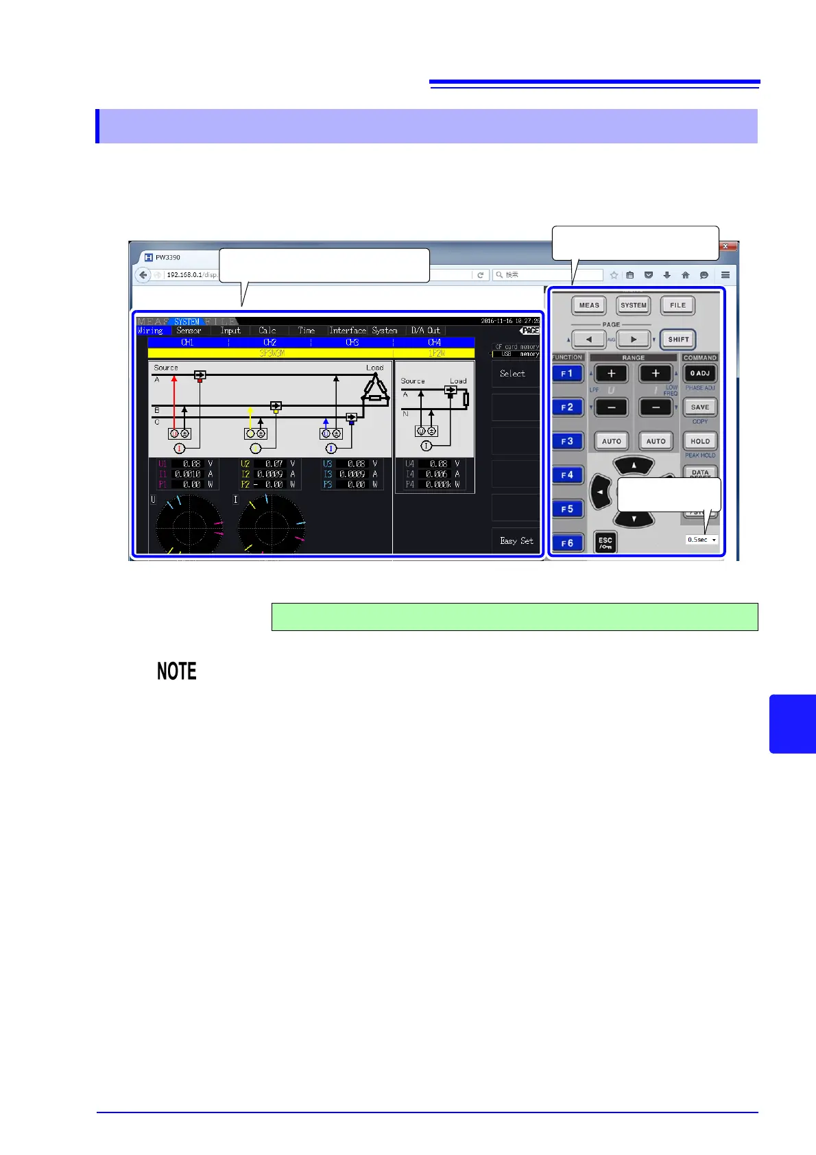 Click on the control panel keys to perform the same operations as the instrument keys.