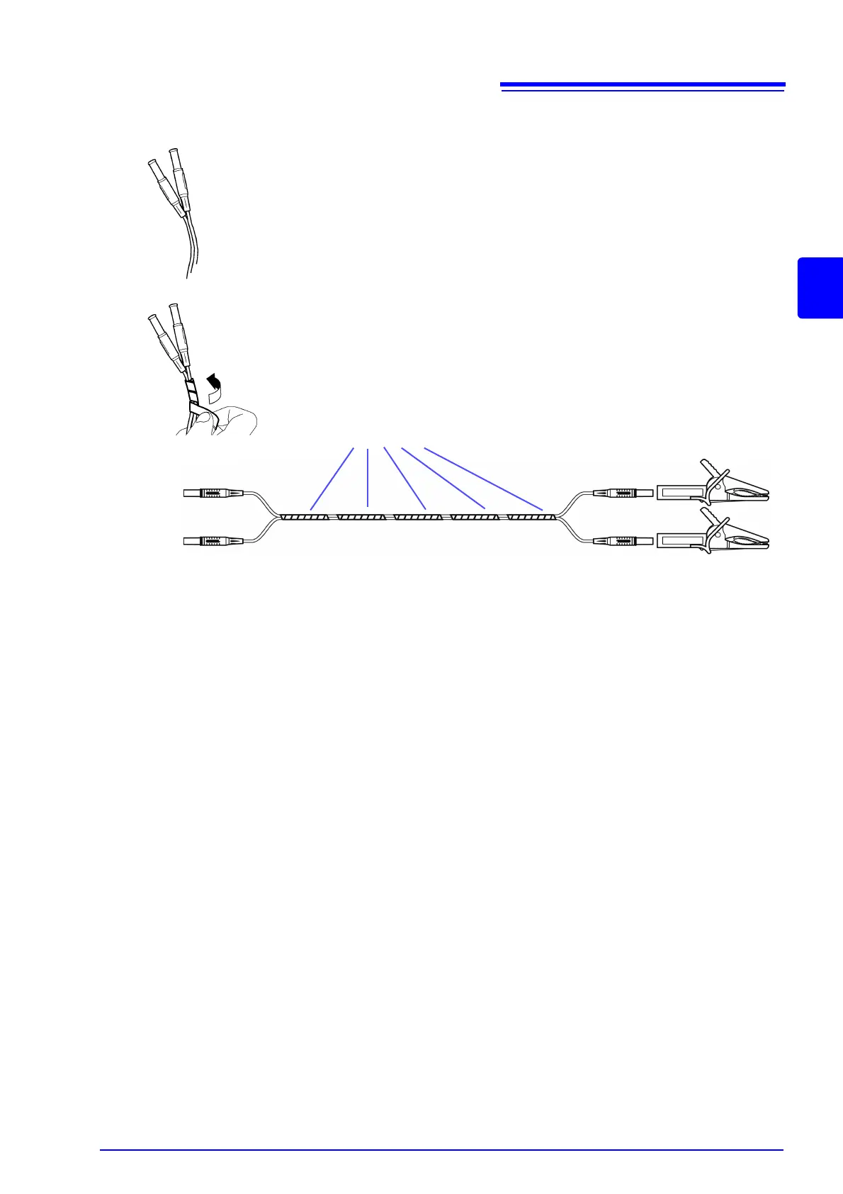 Hold two cable leads (one each red and black) side-by-side.