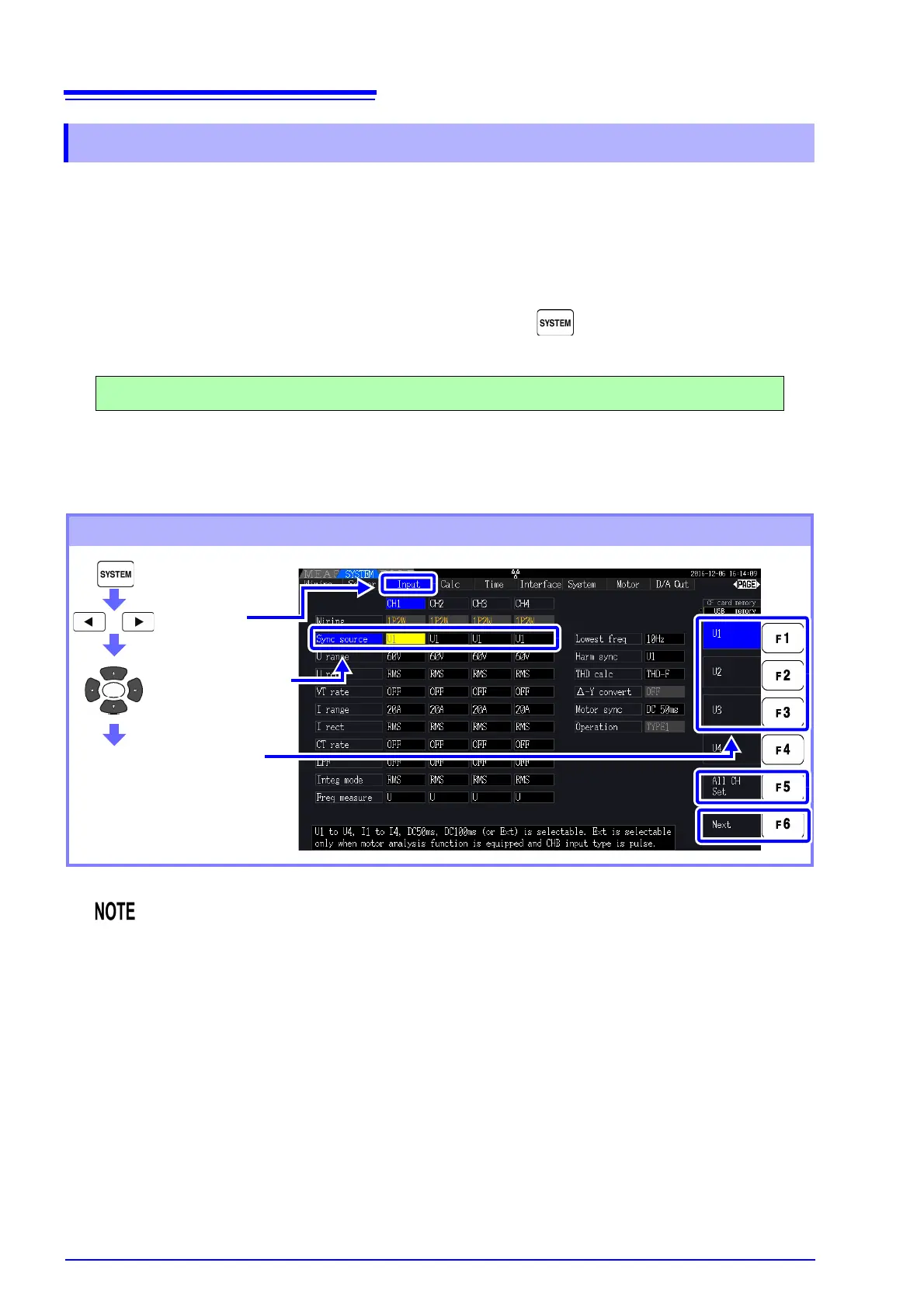 The selected synchronization source is displayed as [Sync] on the Measurement screen.