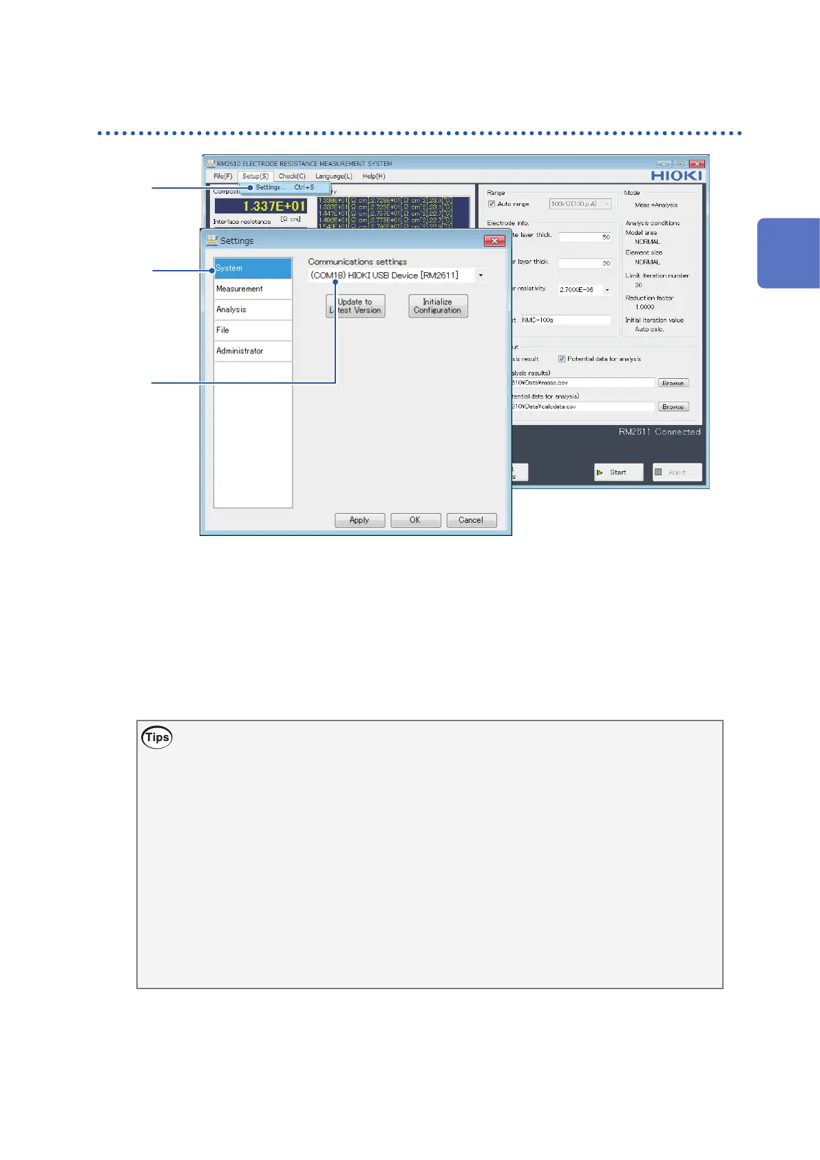 If the [Communications settings] eld is blank, the RM2611 Electrode Resistance Meter is