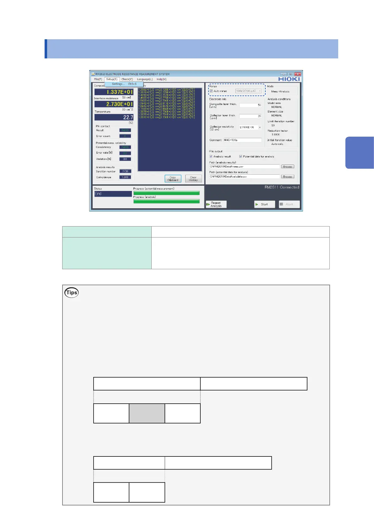 measurement using [Auto range] and then choose the resistance range that was used by the [Auto