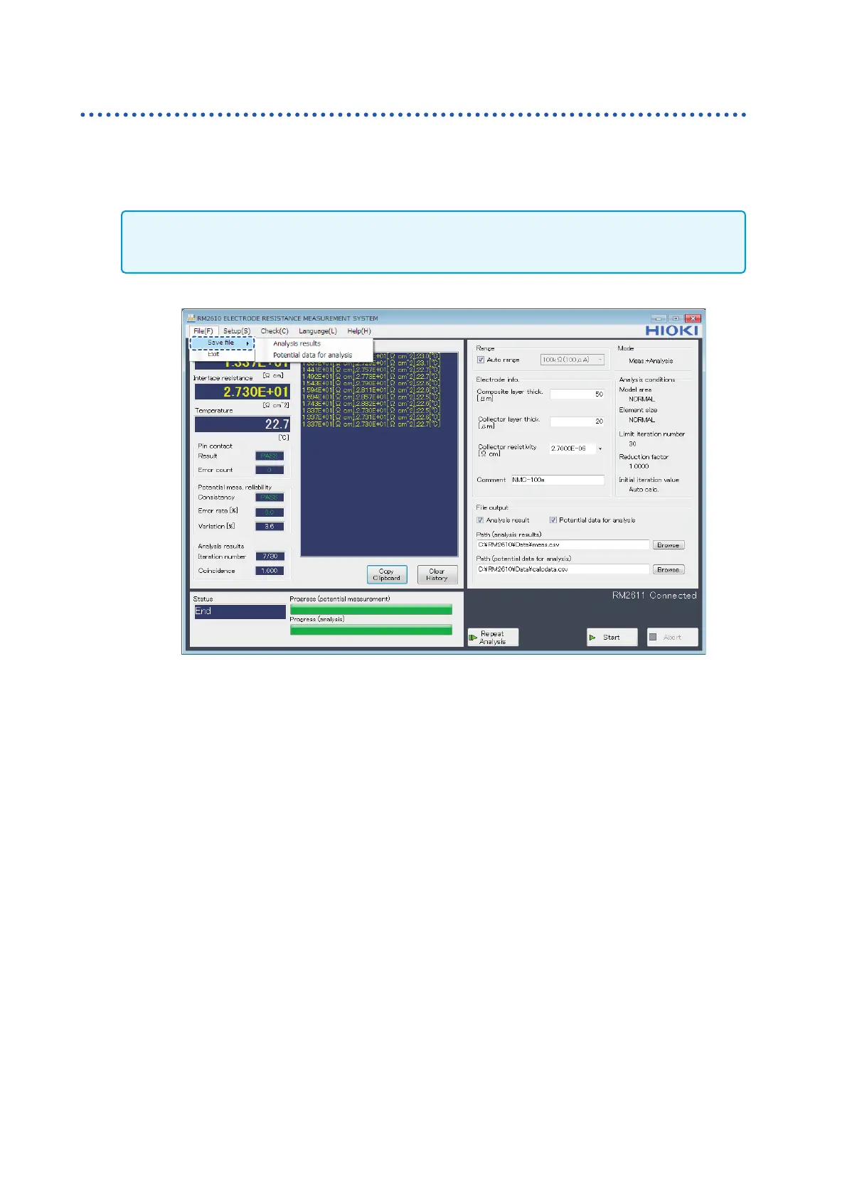 last analysis results and potential distribution data for analysis as a CSV le by choosing [Save le]