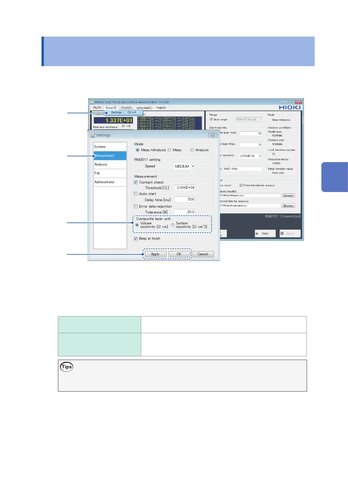 You can set the unit used to measure composite layer resistance to either Volume resistivity [