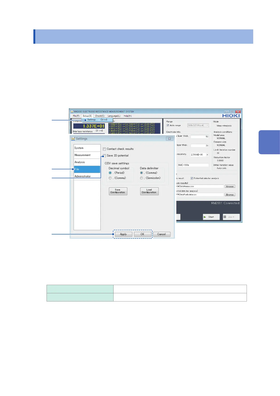 You can output a 2D potential distribution le of 5×5 potential measurements by enabling [Save 2D