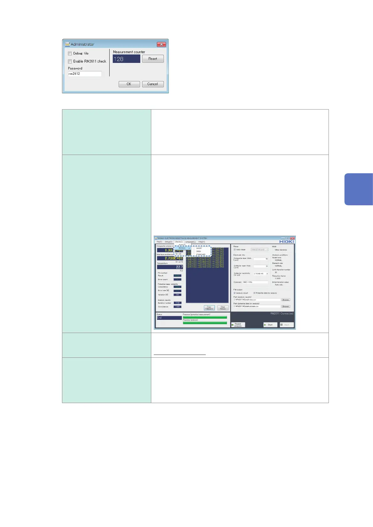 Measurement counter Click [Reset] to reset the measurement counter to 0. The counter is