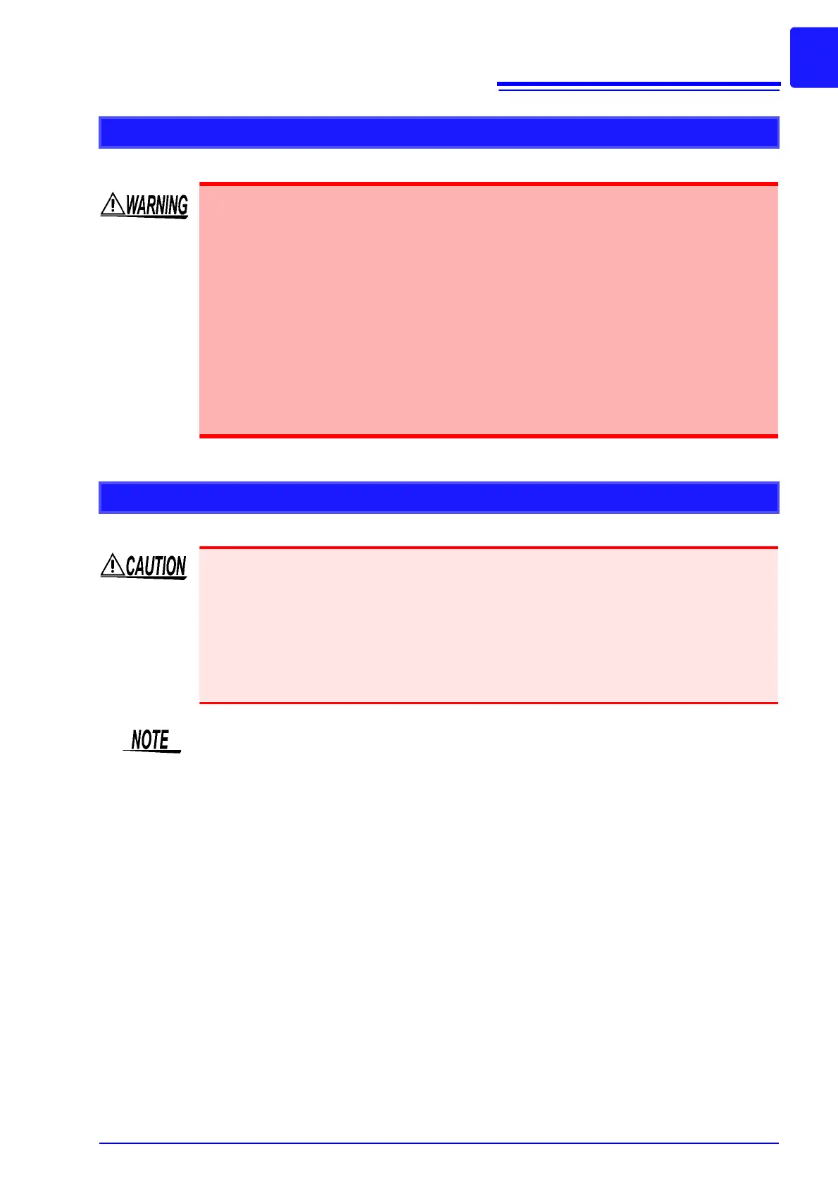 • Do not apply any voltage to the measurement jacks. Doing so could damage the instru-