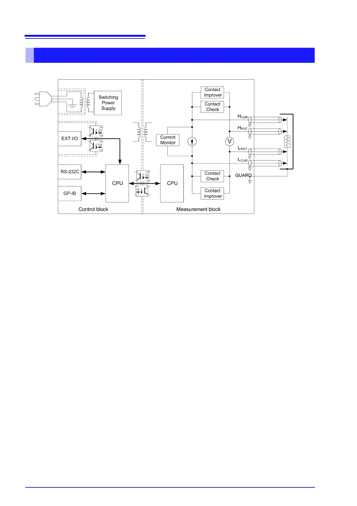 • When measurement starts, the contact check circuit (E) and constant current monitor (F) are activated to monitor for