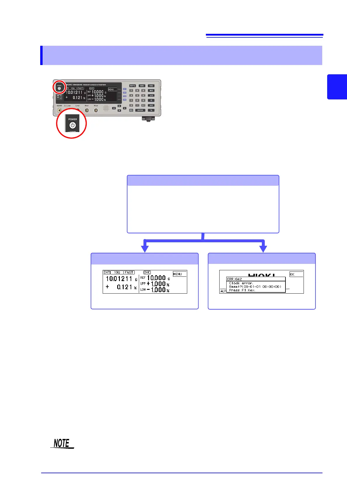 Measurement settings are recalled from when the power was previously turned off (settings
