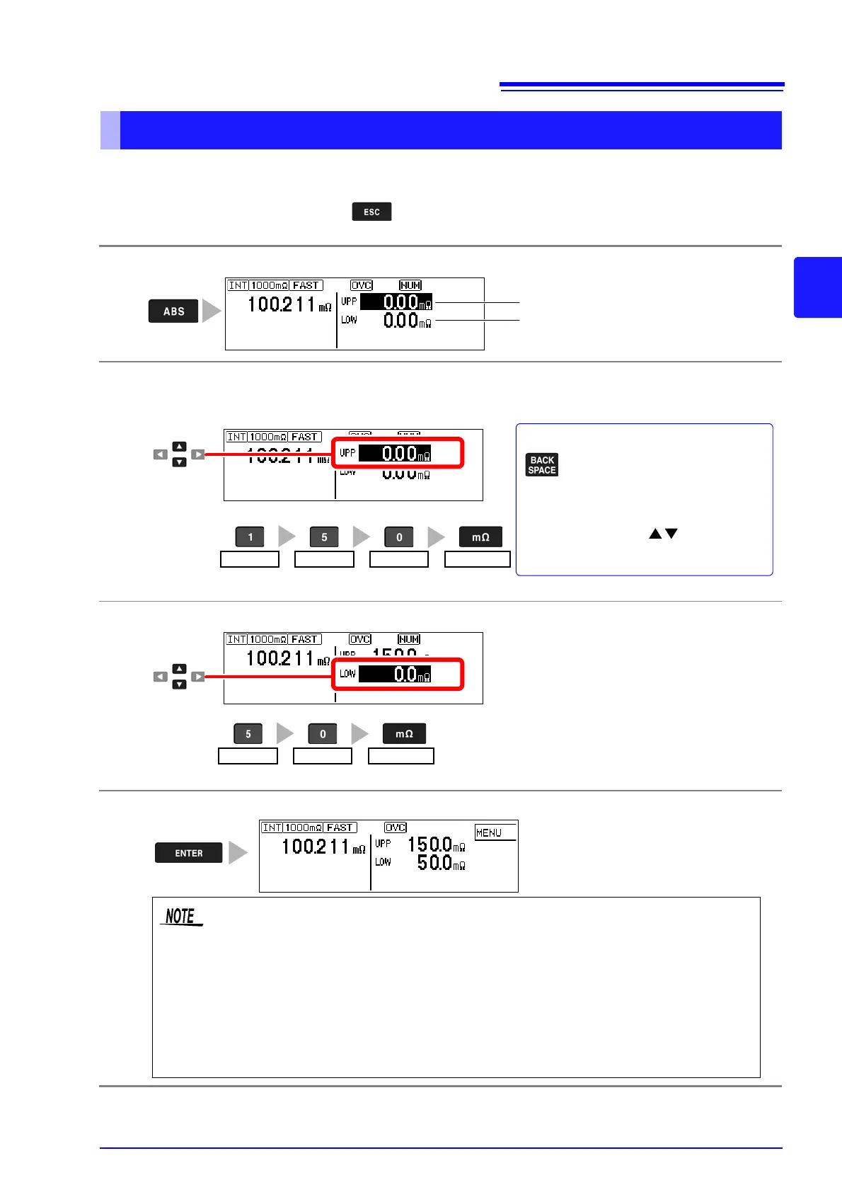 Press the units key to accept the setting and move the cursor to the lower threshold value.