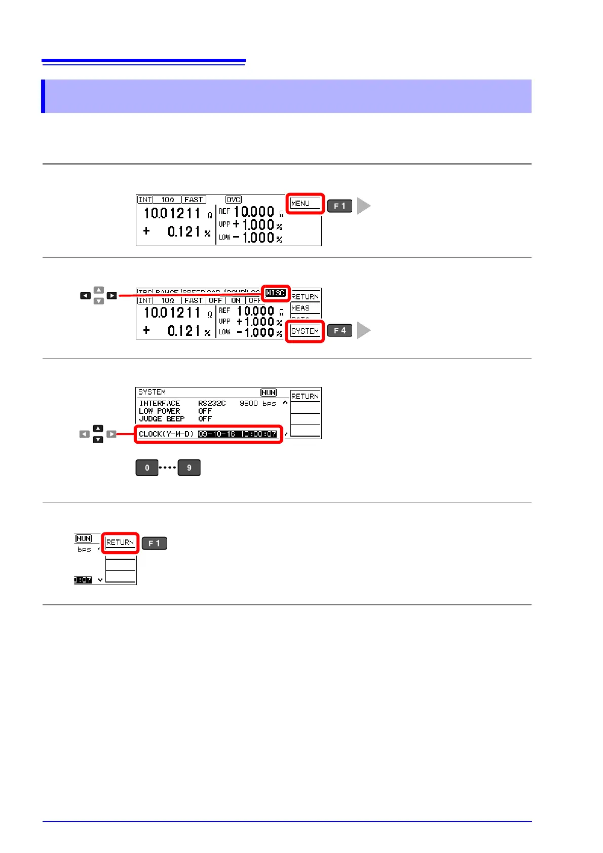 To record and print the correct time when using statistical calculations (p. 74), the clock needs to be