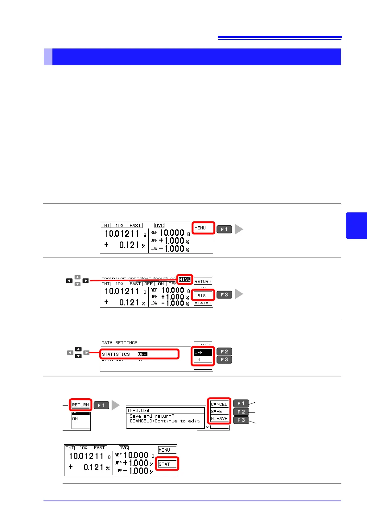When statistical calculation is enabled, F3 [STAT] appears