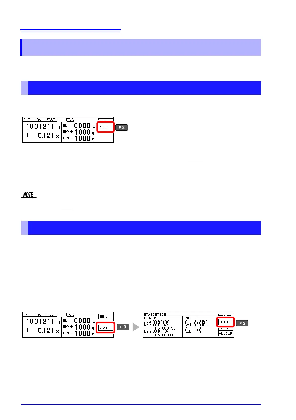 Press the PRINT key to print the measured value currently displayed on the Measurement screen.