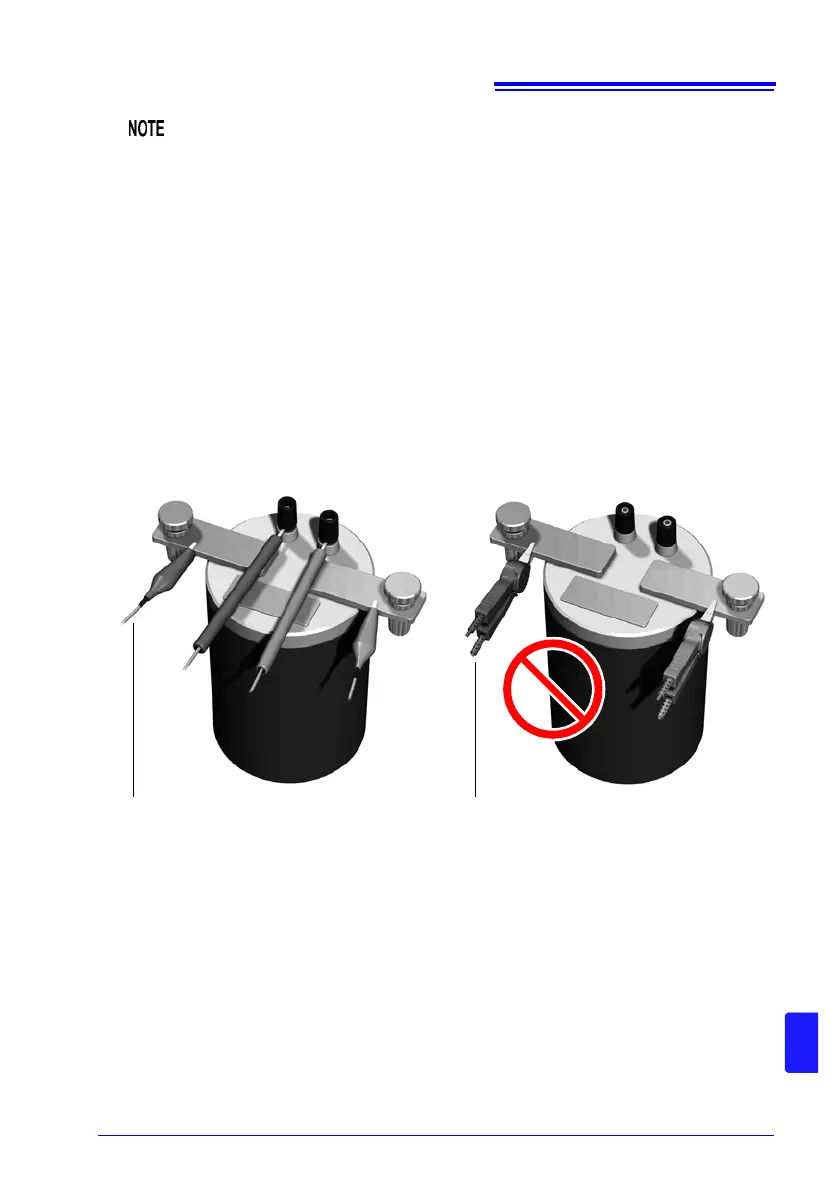 Use the 4-terminal Lead from Hioki. Note that connection cannot be made with the Clip