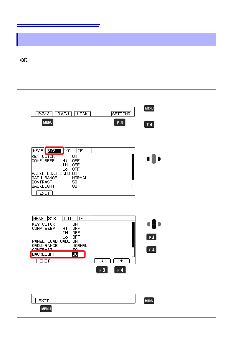 • When external (EXT) triggering is selected, backlight brightness is automatically reduced