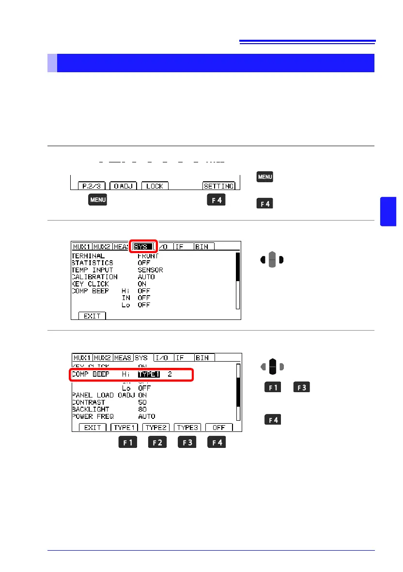 When using the multiplexer, separate judgment tones can be set for PASS and FAIL judg-