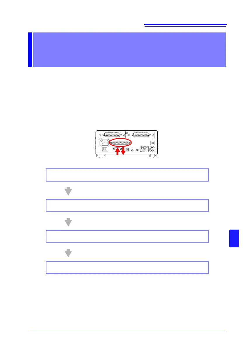 Connect the instrument’s EXT I/O connector to the controller. (p.177)