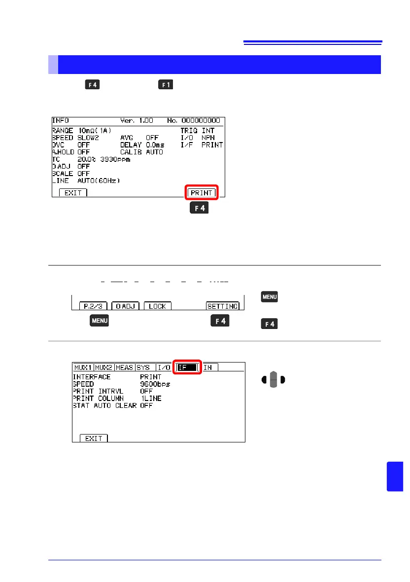 Printing List of Measurement Conditions and Settings