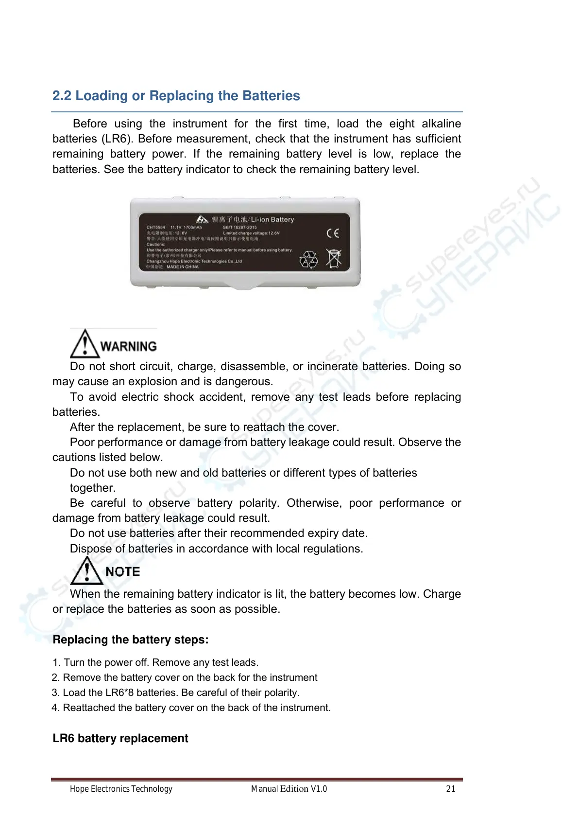 batteries (LR6). Before measurement, check that the instrument has sufficient