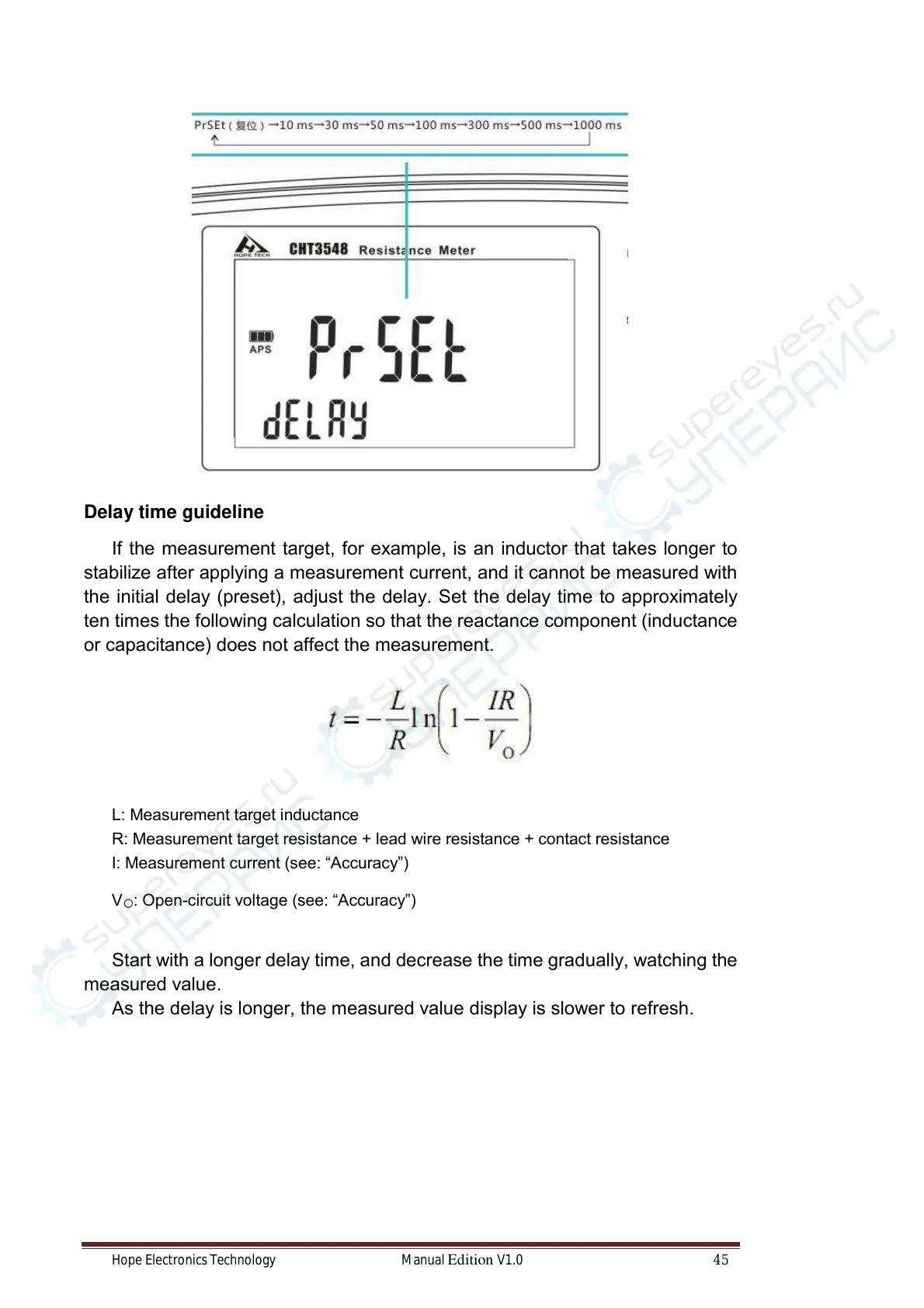 the initial delay (preset), adjust the delay. Set the delay time to approximately