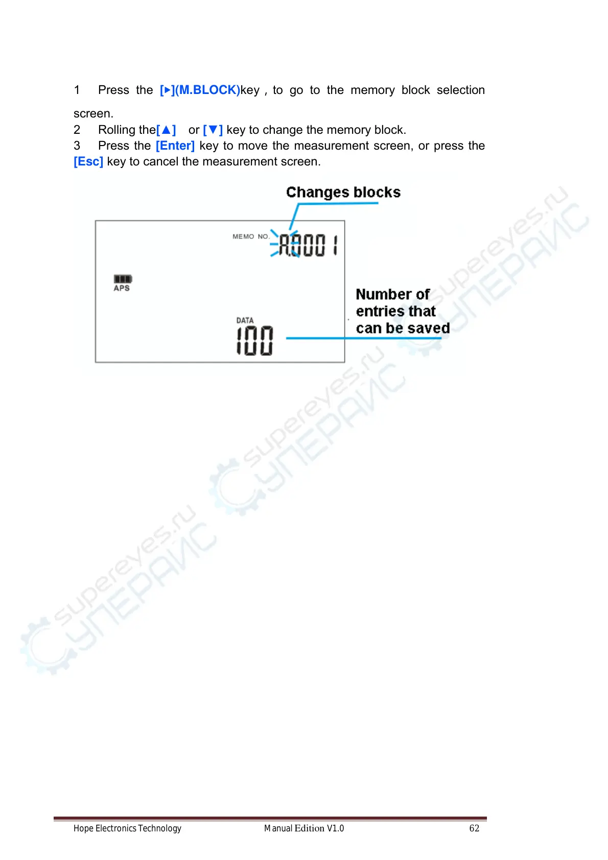 2 Rolling the[] or [] key to change the memory block.