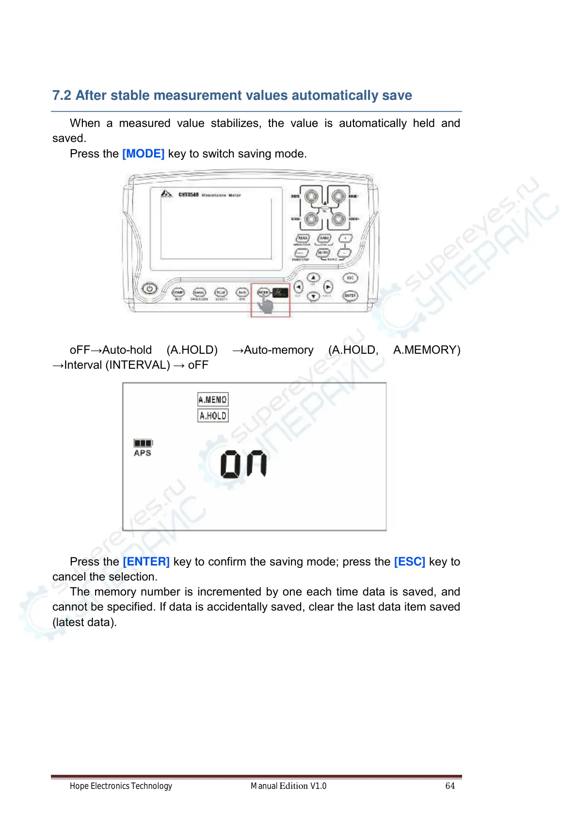 oFF→Auto-hold (A.HOLD) →Auto-memory (A.HOLD, A.MEMORY)