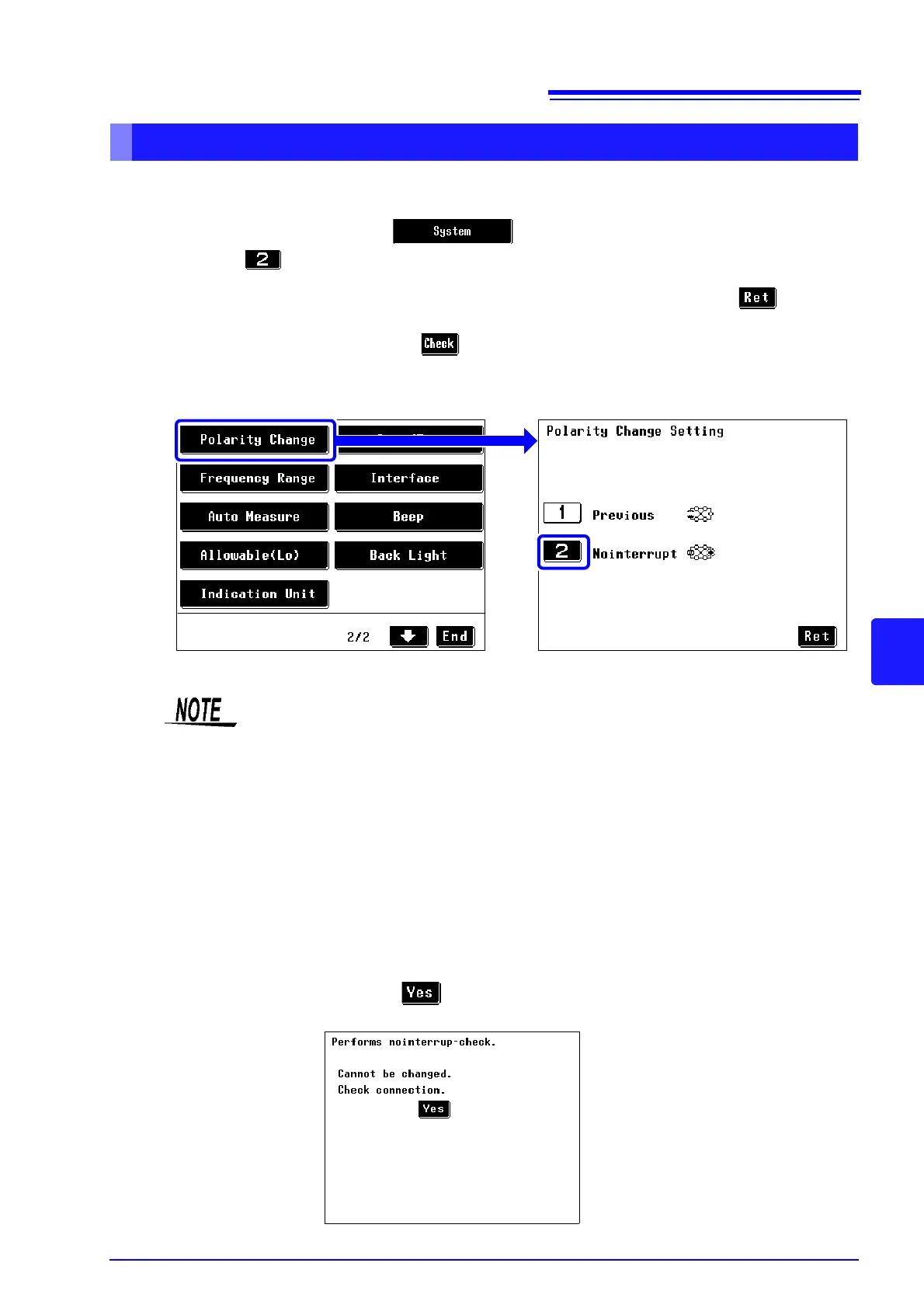 7.7 Power On Polarity Switching (to keep equipment under test on during polarity