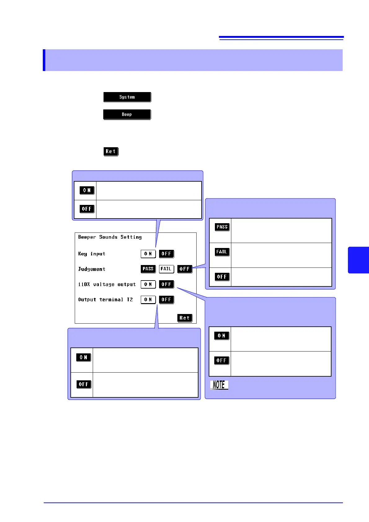 2. Press to display the beep sound setting screen.