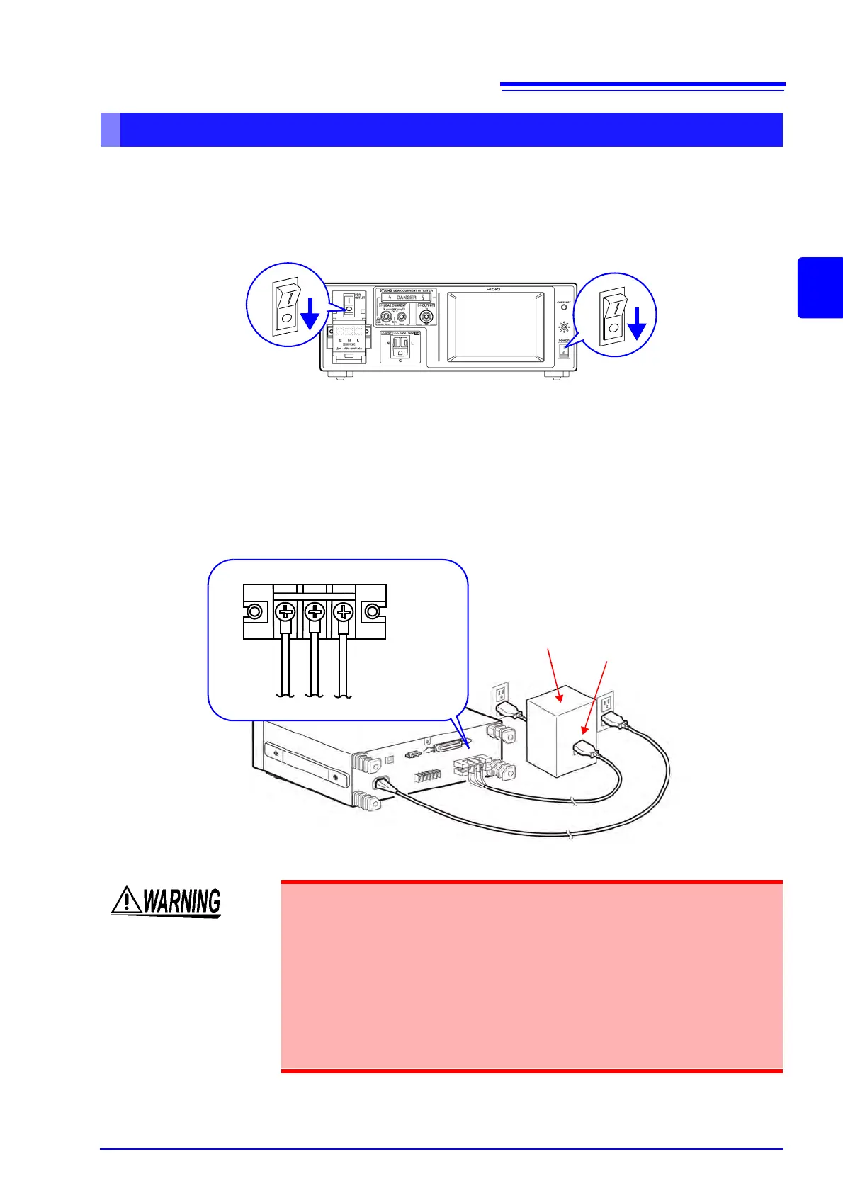 • When connecting the power cord of the equipment under test to the