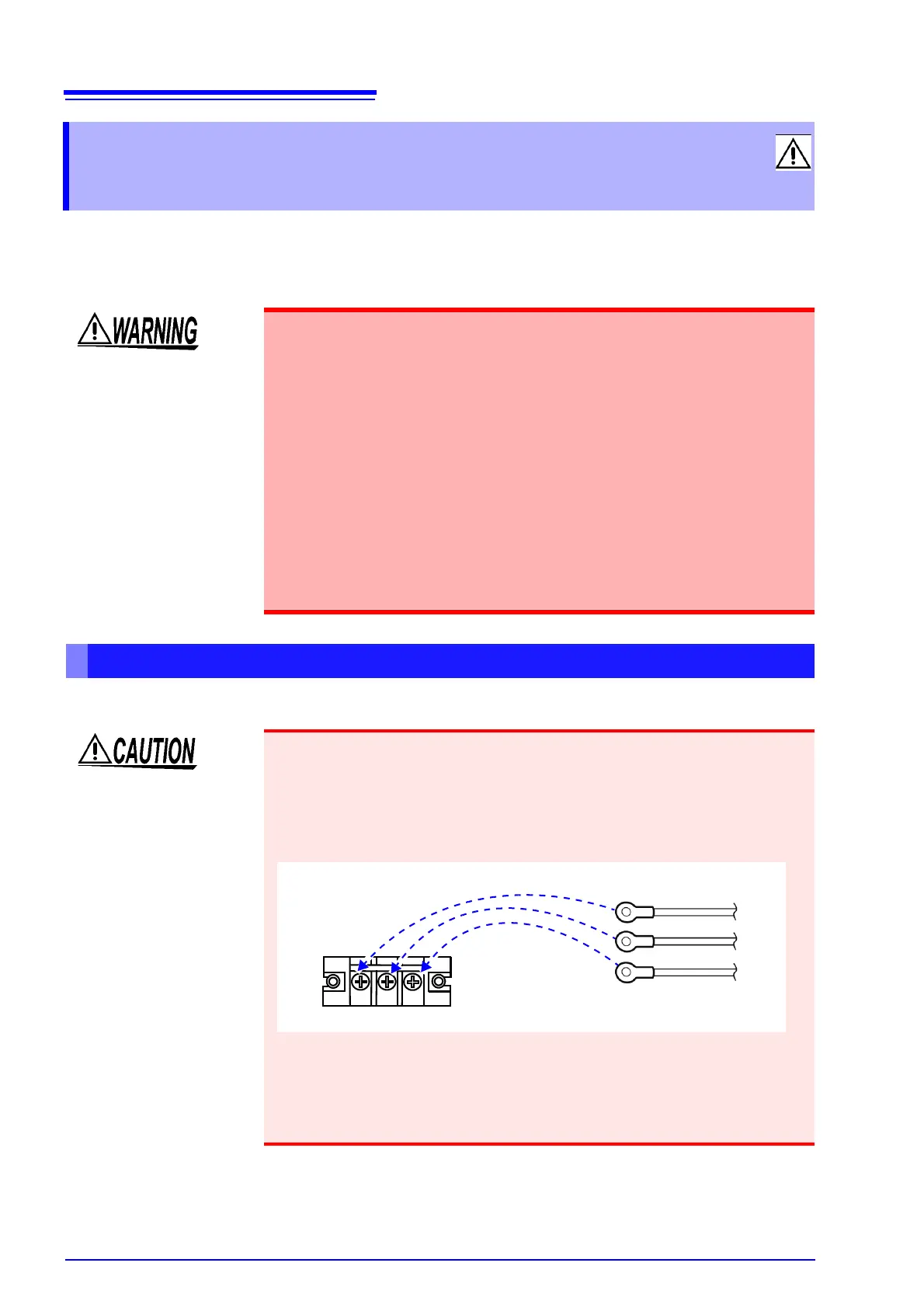 When connecting the HiTESTER to equipment under test with a power cord, use the terminal