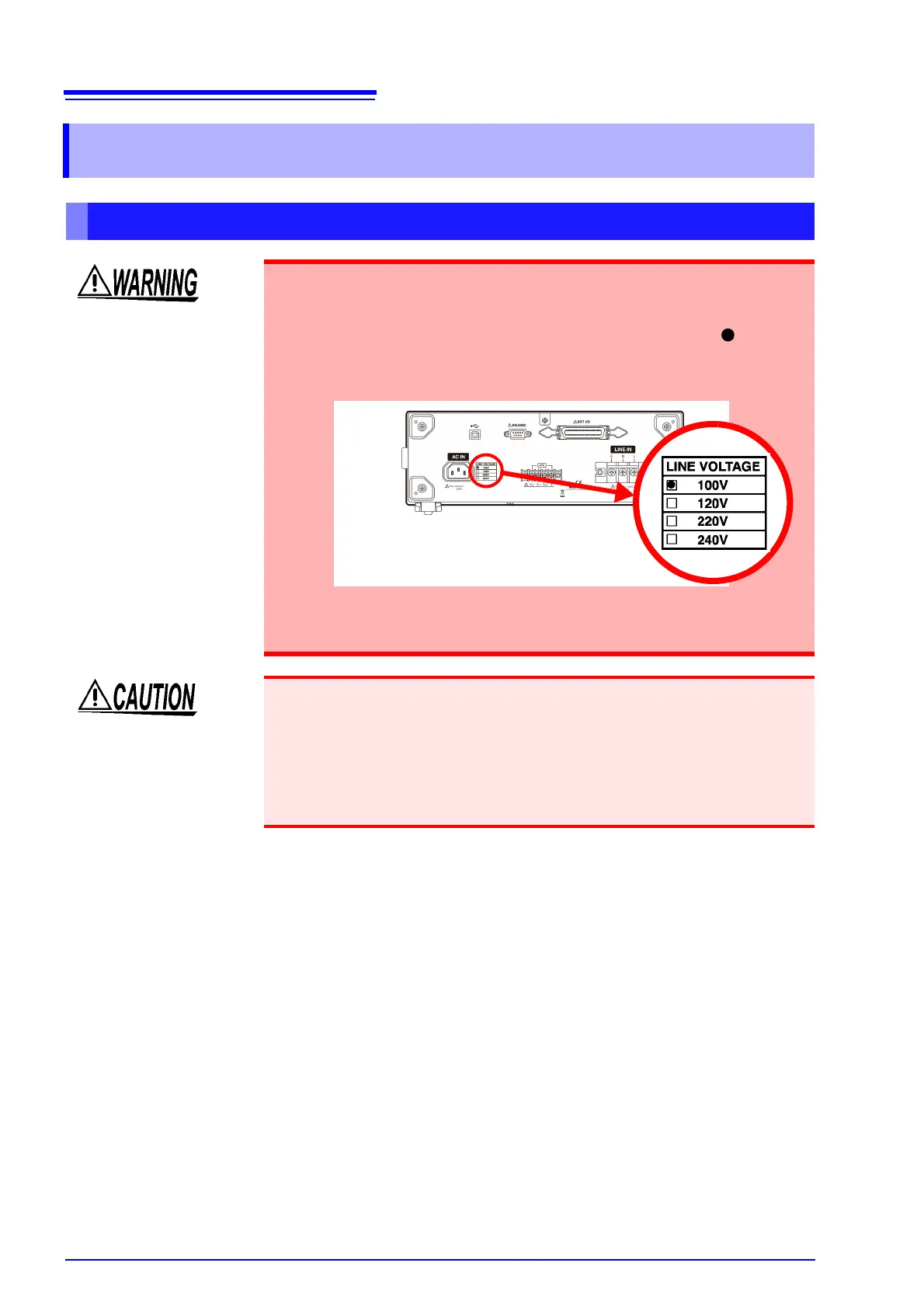 power connector ([AC IN]). (The voltage specification (100, 120, 220 or