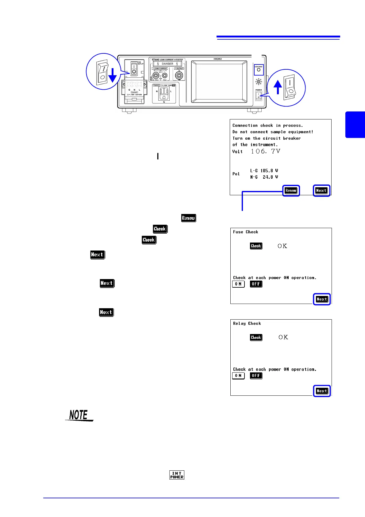 See ."Inspecting line power supply for the equipment under test" (p. 42)