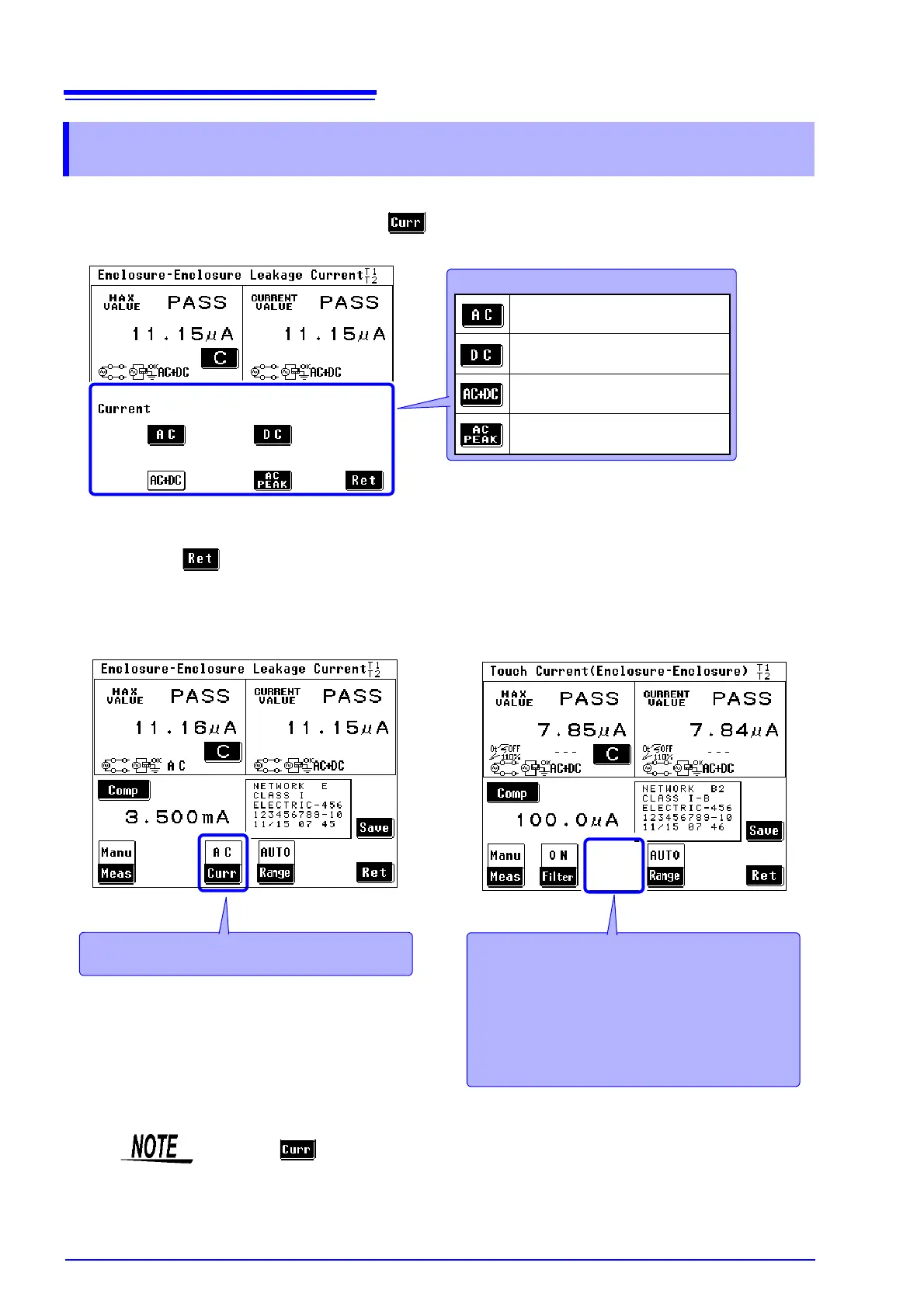1. On the measurement screen, press to display the target current setting screen.