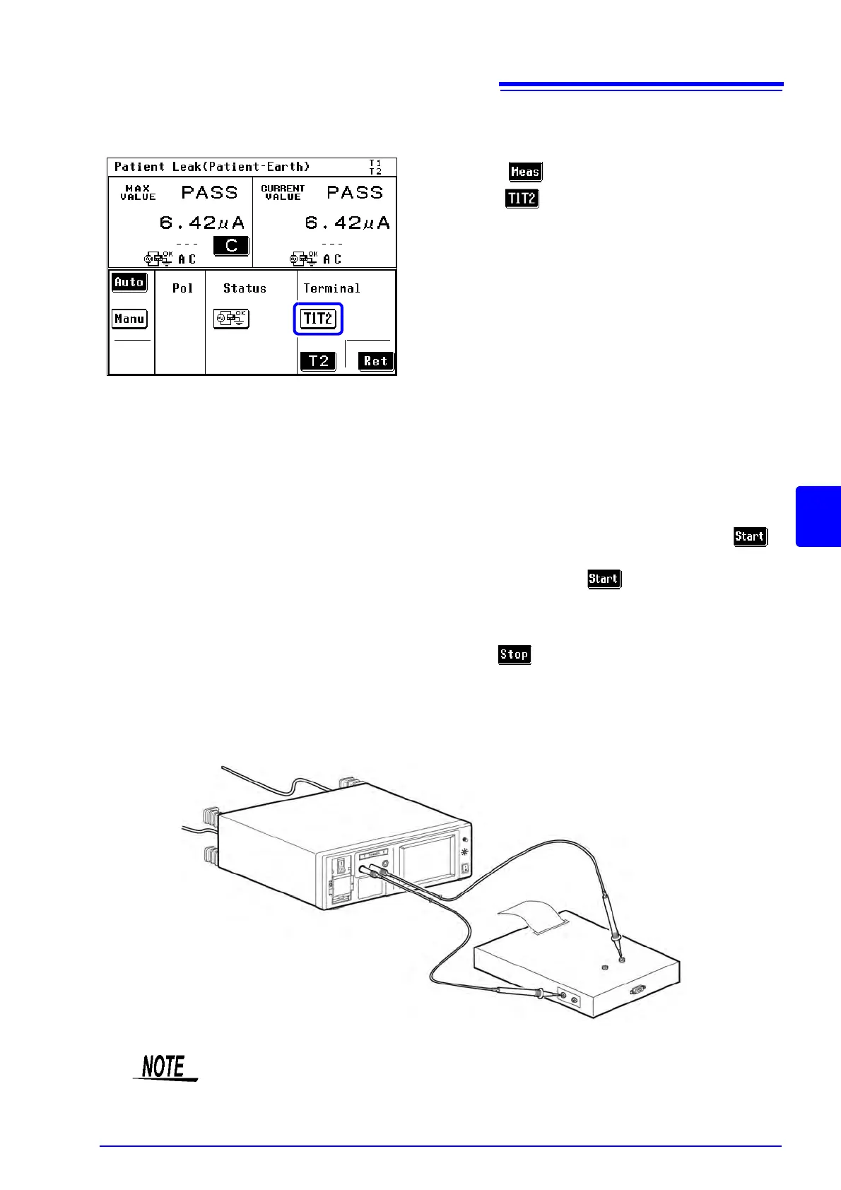 ment screen. Press to start patient leakage