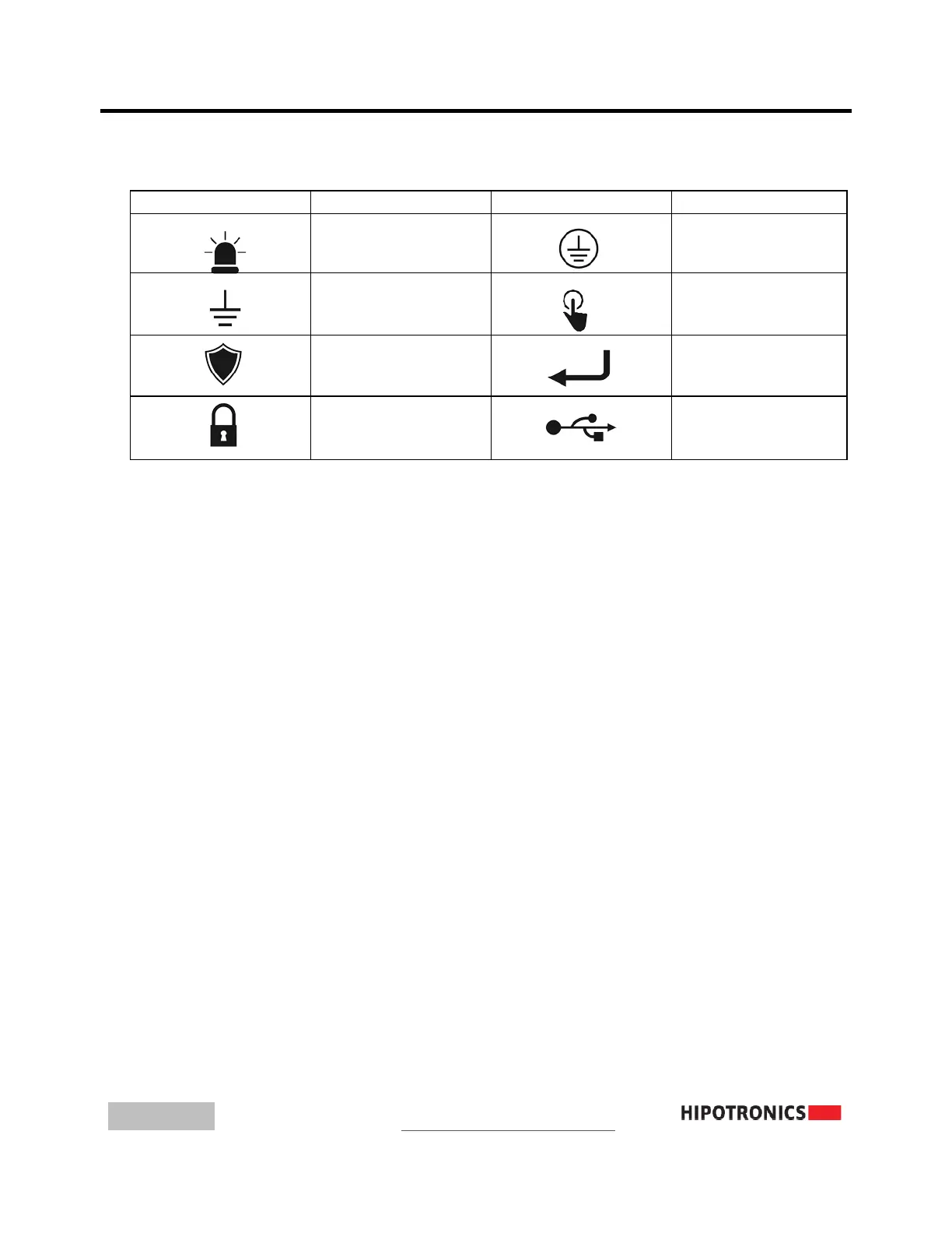 HIPOTRONICS 880PL-HD - Glossary of Front Panel Symbols