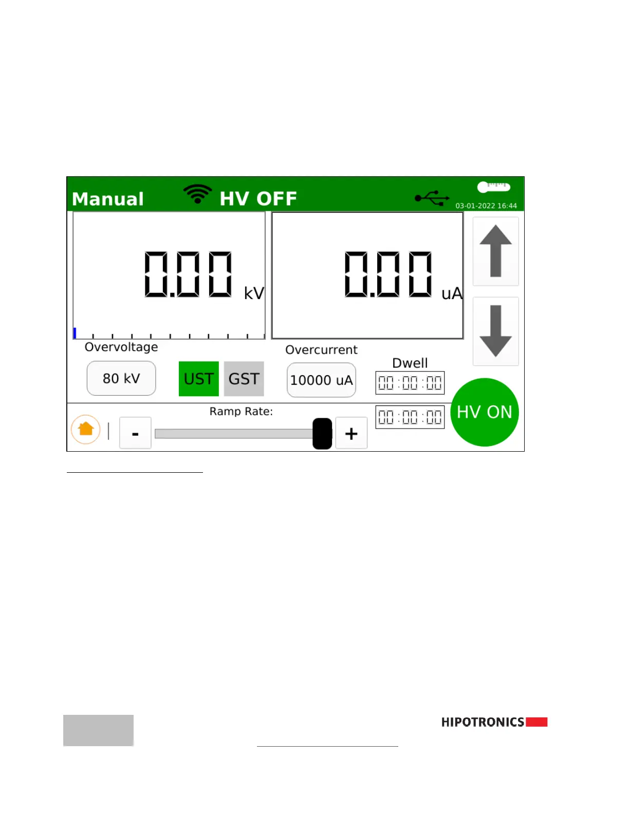 conclusion of the test, ramp the voltage back down to Zero before pressing