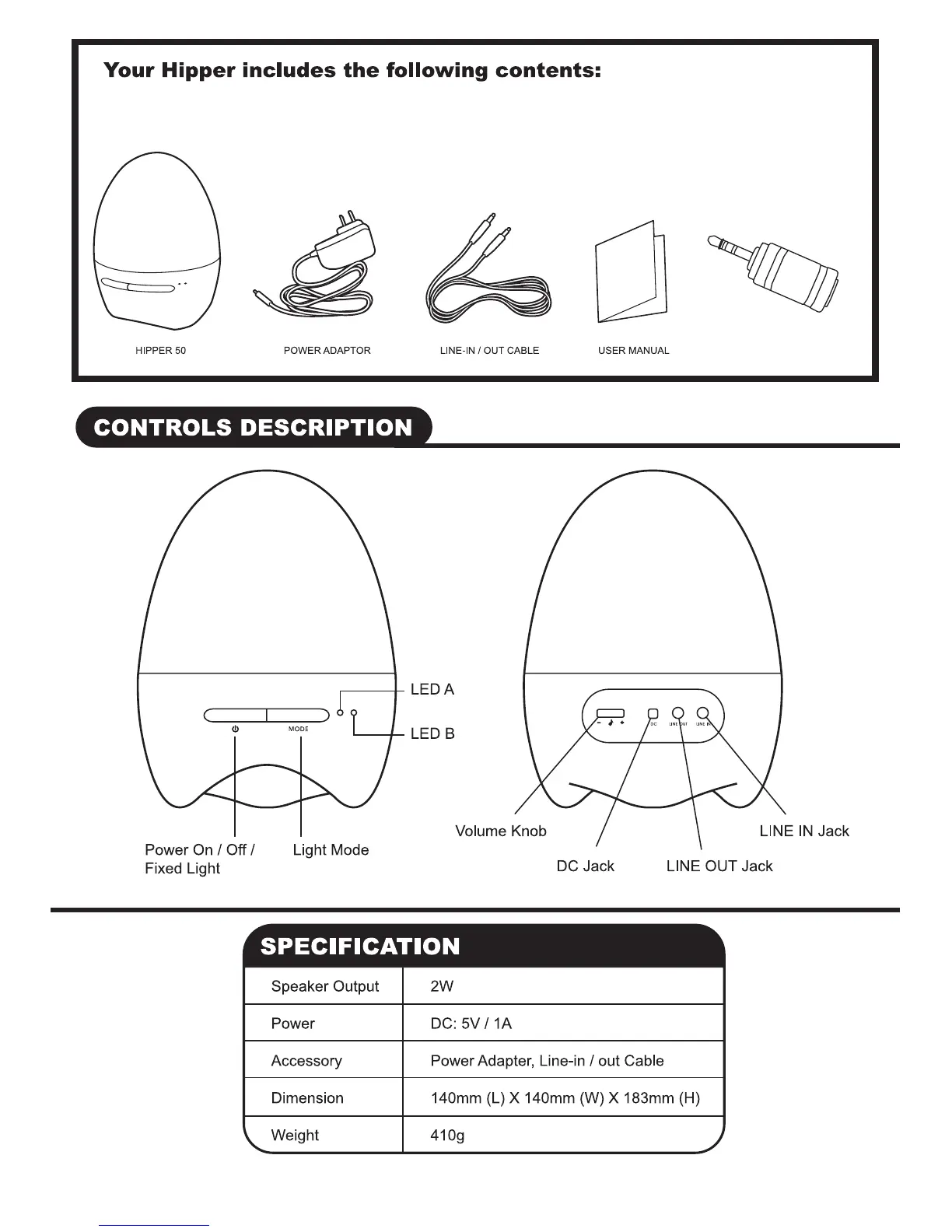 Hipper 50 - Controls Description; Technical Specifications
