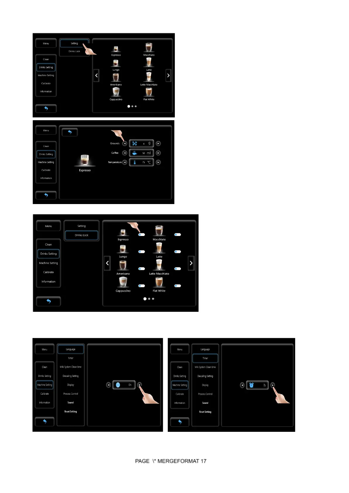 Hipresso DP2002 - Touch Drink Setting-Drinks lock; Touch Machine Setting-Language; Touch Machine Setting-Timer