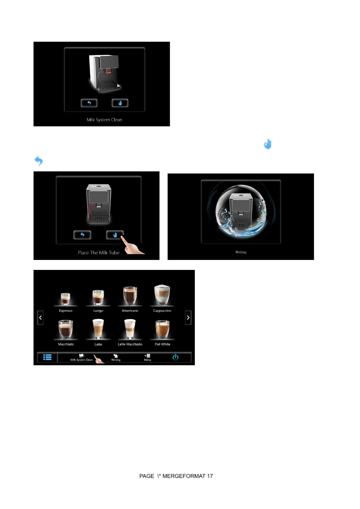 Touch main menu icon Choose Milk System Clean