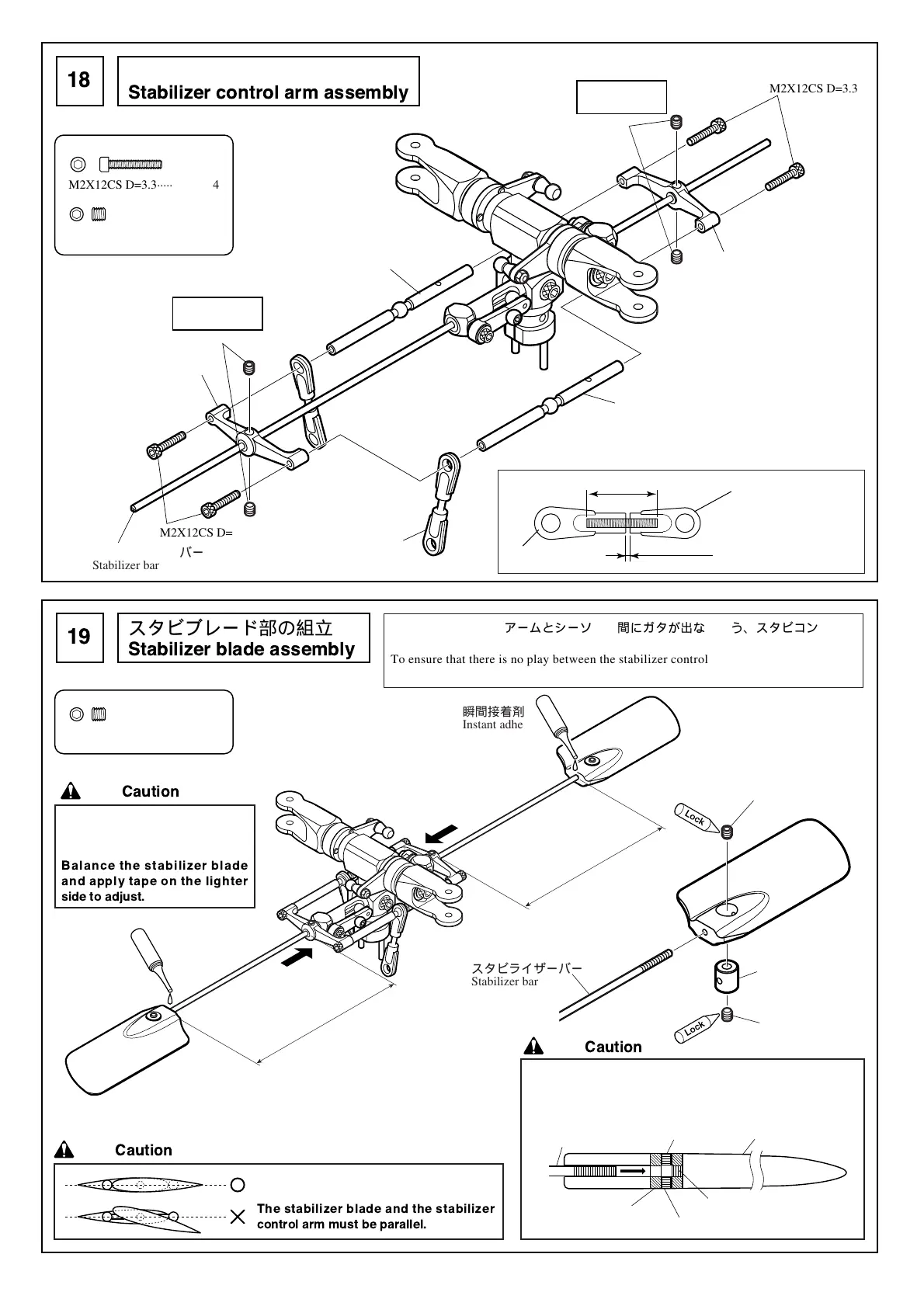 スタビコントロールアームとシーソーの間にガタが出ないよう、スタビコントロー