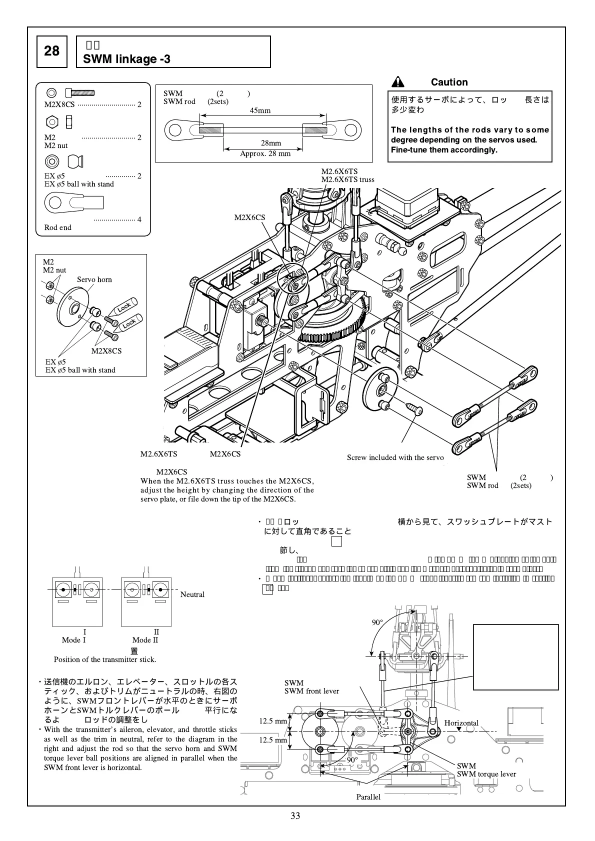 ・Wheninclined,adjustthelengthoftheSWMfrontlever/swashrodinstalledinsection
