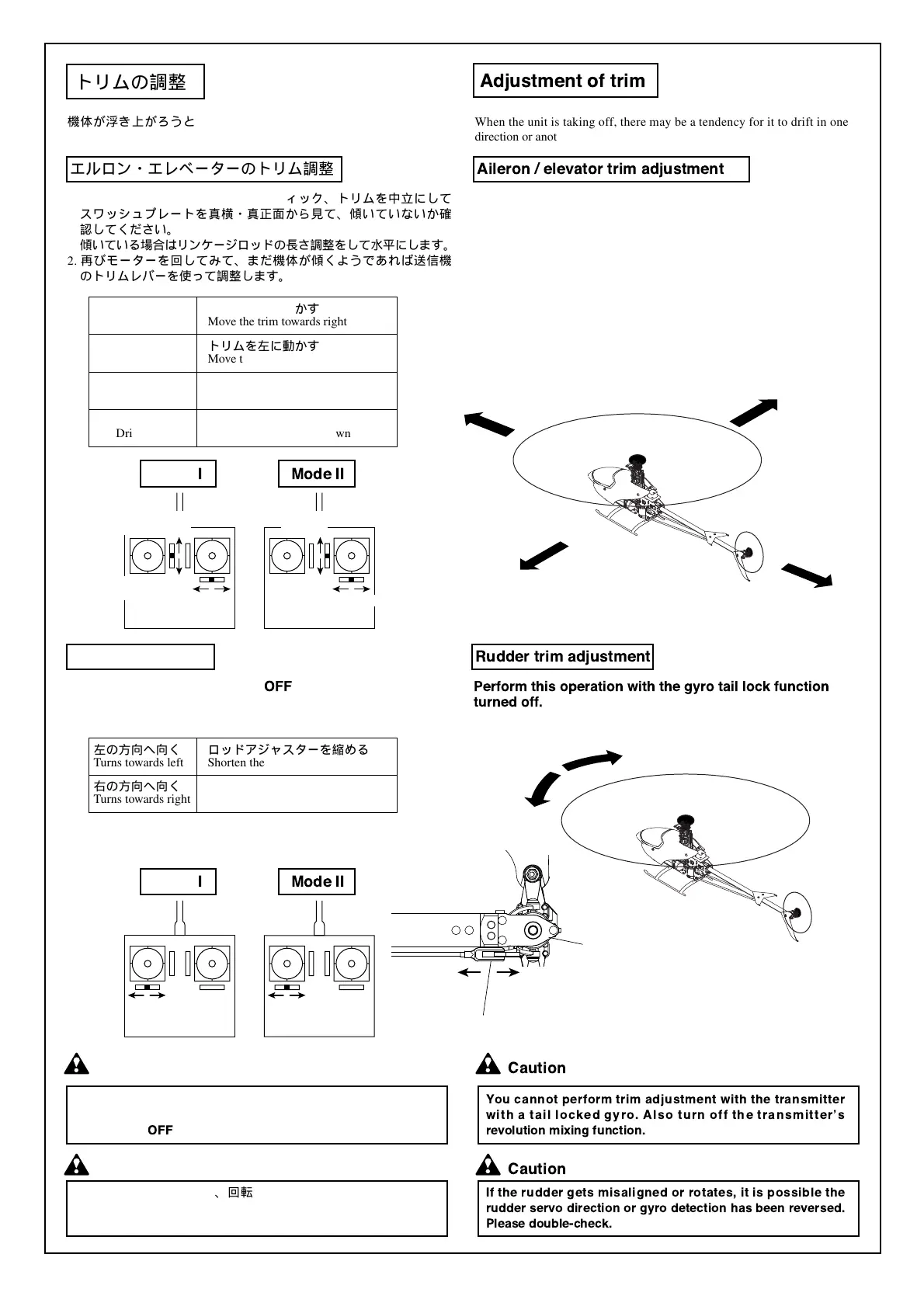 1. モーターを停止させ、送信機のスティック、トリムを中立にして