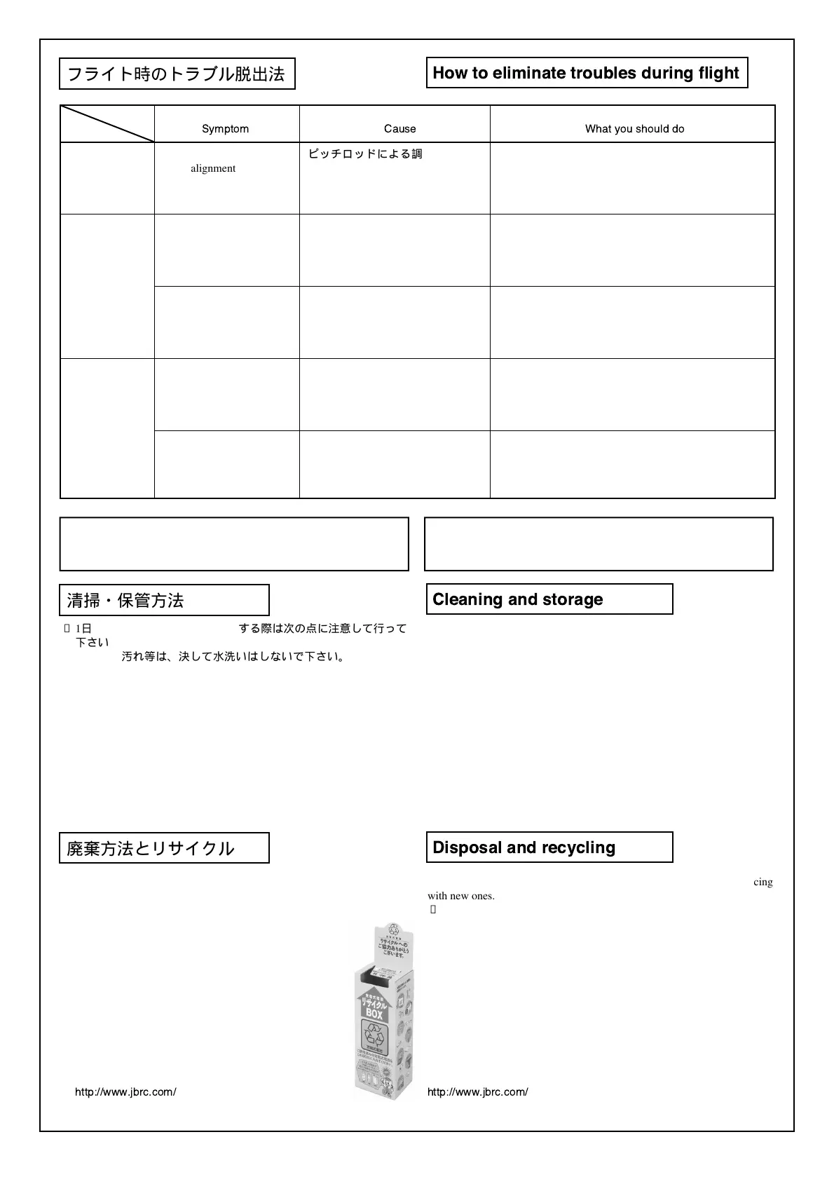 機体の油汚れ等は、決して水洗いはしないで下さい。無線機器の